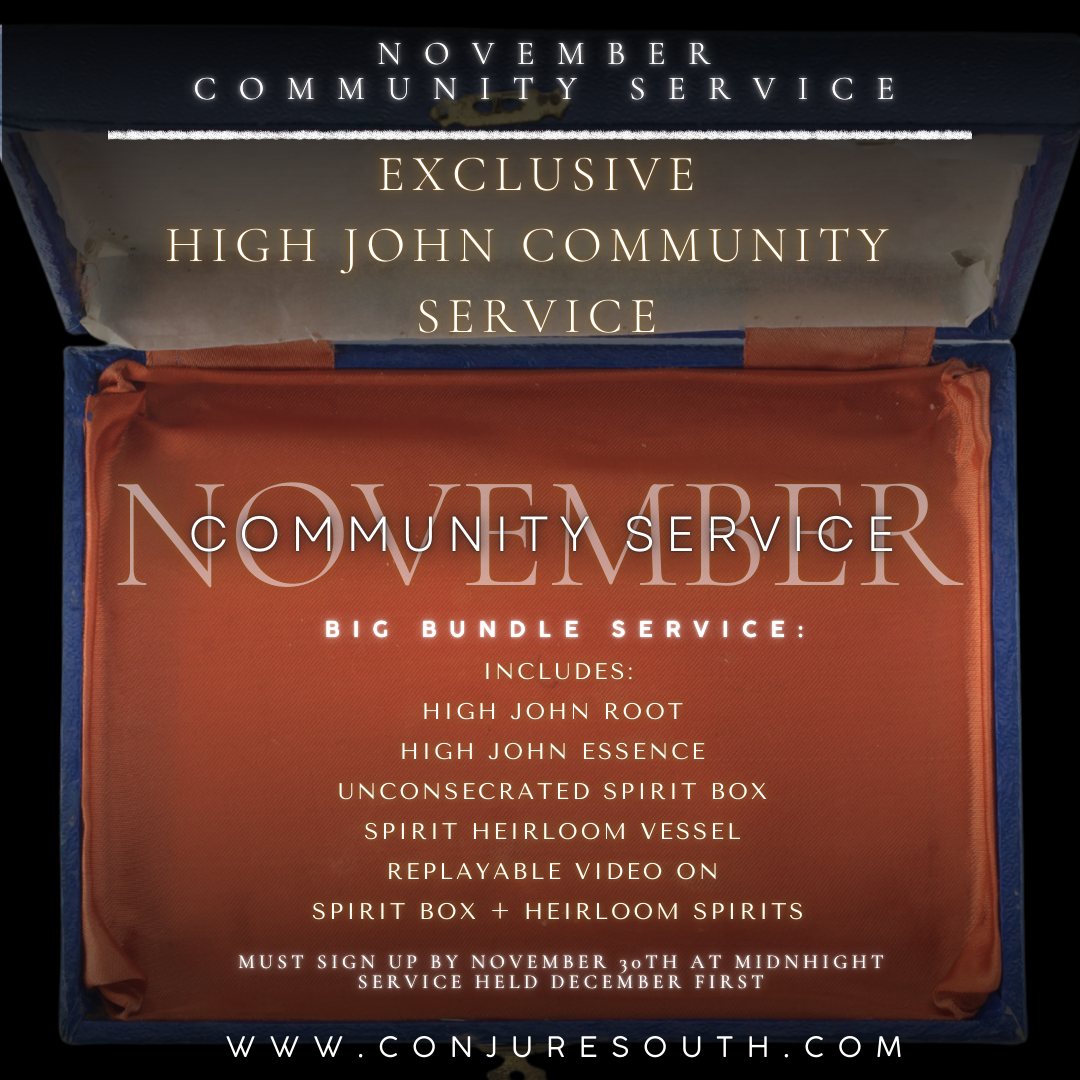 Join Conjure South for your monthly traditional community services. Each service provides spiritual services and products ranging from candles, oils, and herbal blends!